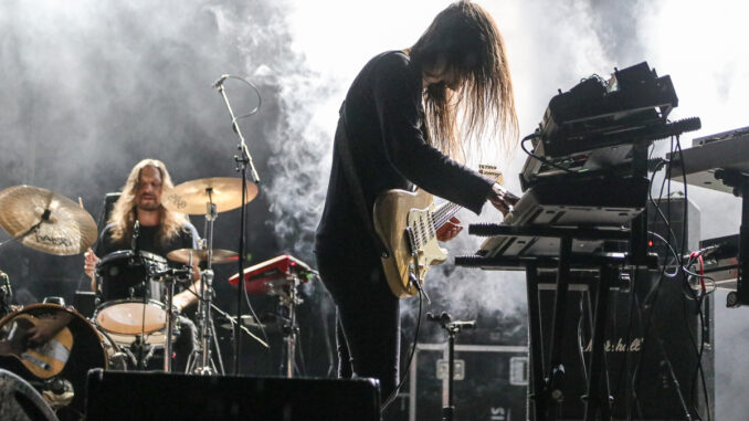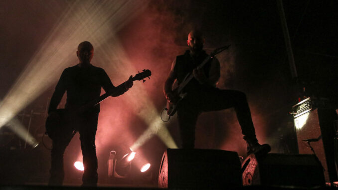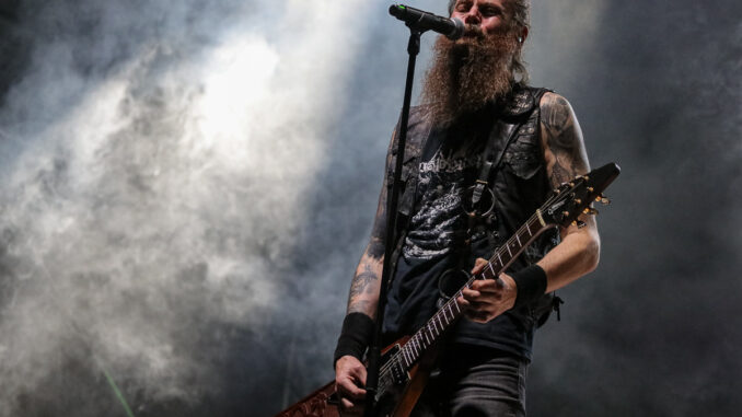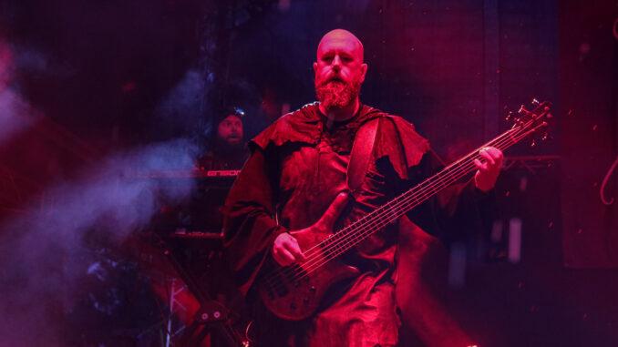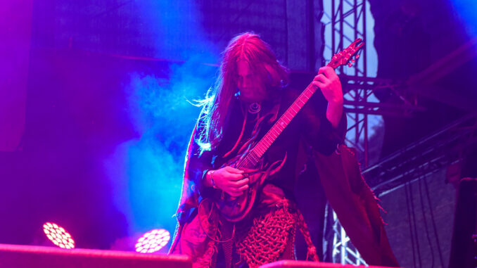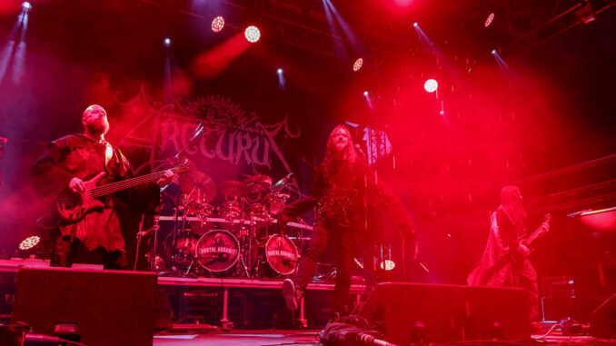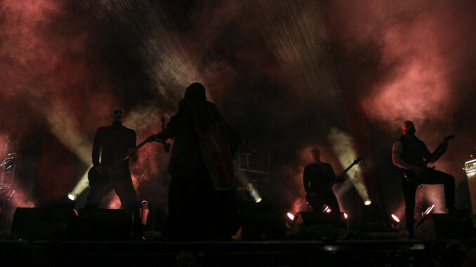 Mezi jedny z těch, kteří večer dominovali na hlavním pódiu, bezpochyby patřili islandští Sólstafir, které někteří označují za “black metalové Pink Floydy”. Naneštěstí na sebe upozornili už tím, že k nám ze severu “přivezli” déšť. Ten nicméně nebyl zdaleka tak zničující jako truchlivá, náladotvorná hudba, kterou kapela obdařila veliký dav na Emperor’s Square. Došlo samozřejmě i na skladbu Fjara, kterou lze vnímat jako jakýsi opus magnum těchto ostrovanů. Následovala kapela Mayhem, která svým truchlivým a těžko uvěřitelným příběhem z počátku 90. let definovala velkou část poetiky celého black metalu. Jejich hudba je ohromující již díky neslýchaně dynamické práci bubeníka Hellhammera. Středem pozornosti byl s velikou jistotou hlavně zpěvák Attila Csihar, který měl nejpropracovanější zamaskování a který svou show prožíval na tolik, že se kromě záhrobních vokálů dokázal zabývat i věštěním z lebky. Kapela svým důsledným tracklistem všem znovu ukázala, kdo neúnavně stojí na samotném vrcholu celého žánru.