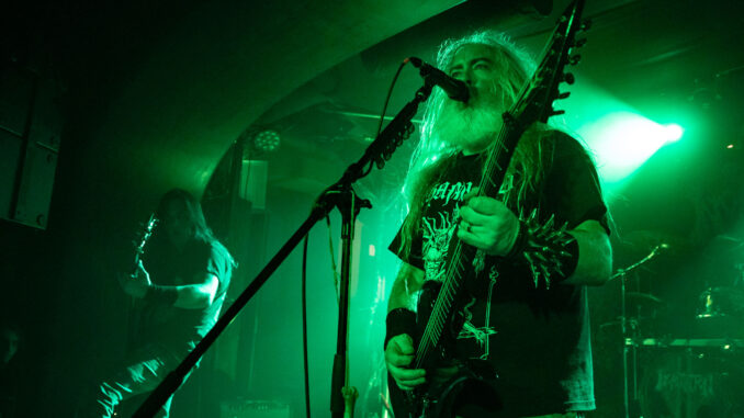 V pražském Futuru zahrála v sobotu 22. října jako první tříčlenná kapela Stygian Bough, která je poměrně novým projektem členů kapel Bell Witch a Aerial Ruin. Jejich stylem je takový doom metal, jenž je sice důrazný a temný, je v něm ale místo i pro melancholický, čistý vokál a atmosférické pasáže. V těch drsnějších zapůsobil bubeník svým chroptivým, hlubokým hlasem. Kapela dobře ukázala, že tento valivý styl lze hrát velmi kultivovaně a s přirozeným mostem k psychedelickým vlnám. Druhou skupinou na pořadu večera byli Incantation, kteří světu extrémního metalu svými songy přispívají již od roku 1989. V pomalejších (rovněž doomových) úsecích působí jejich sabbatovské riffy, tím hlavním je však death metalová smršť s živelnými blast beaty. Kapela dala do své show velké množství energie; lze to říci zejména o frontmanovi Johnu McEnteeovi. Plnící se klub byl zaplněn mohutným zvukem, který byl v chaotičtějších částech trochu hůře čitelný, na zážitku to ale v podstatě vůbec neubralo.