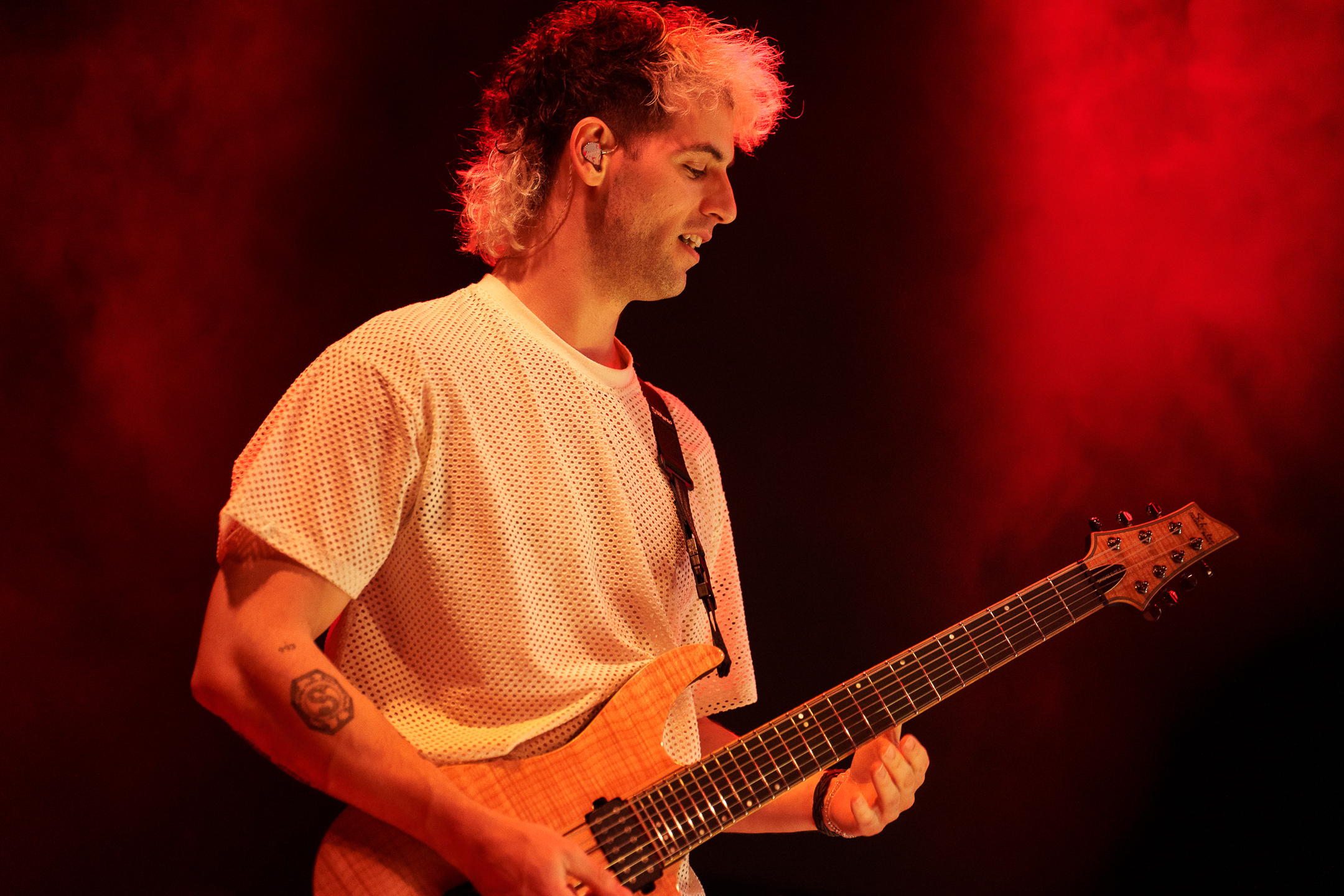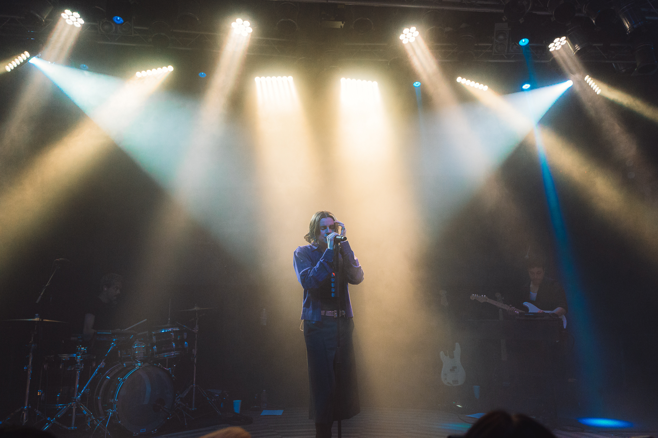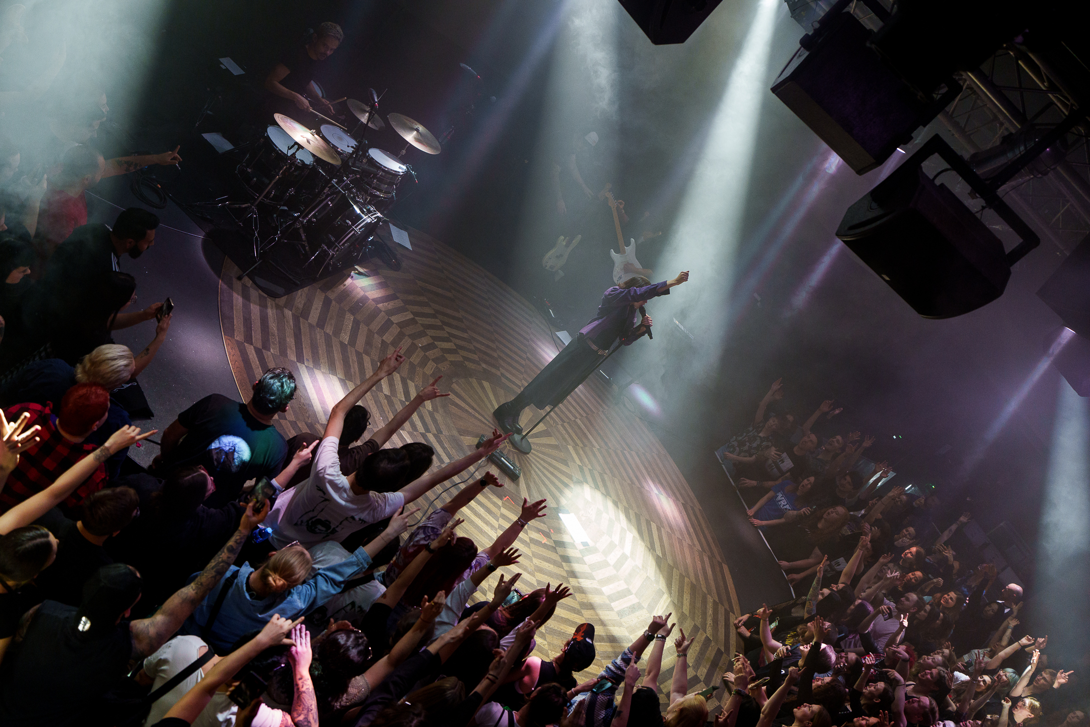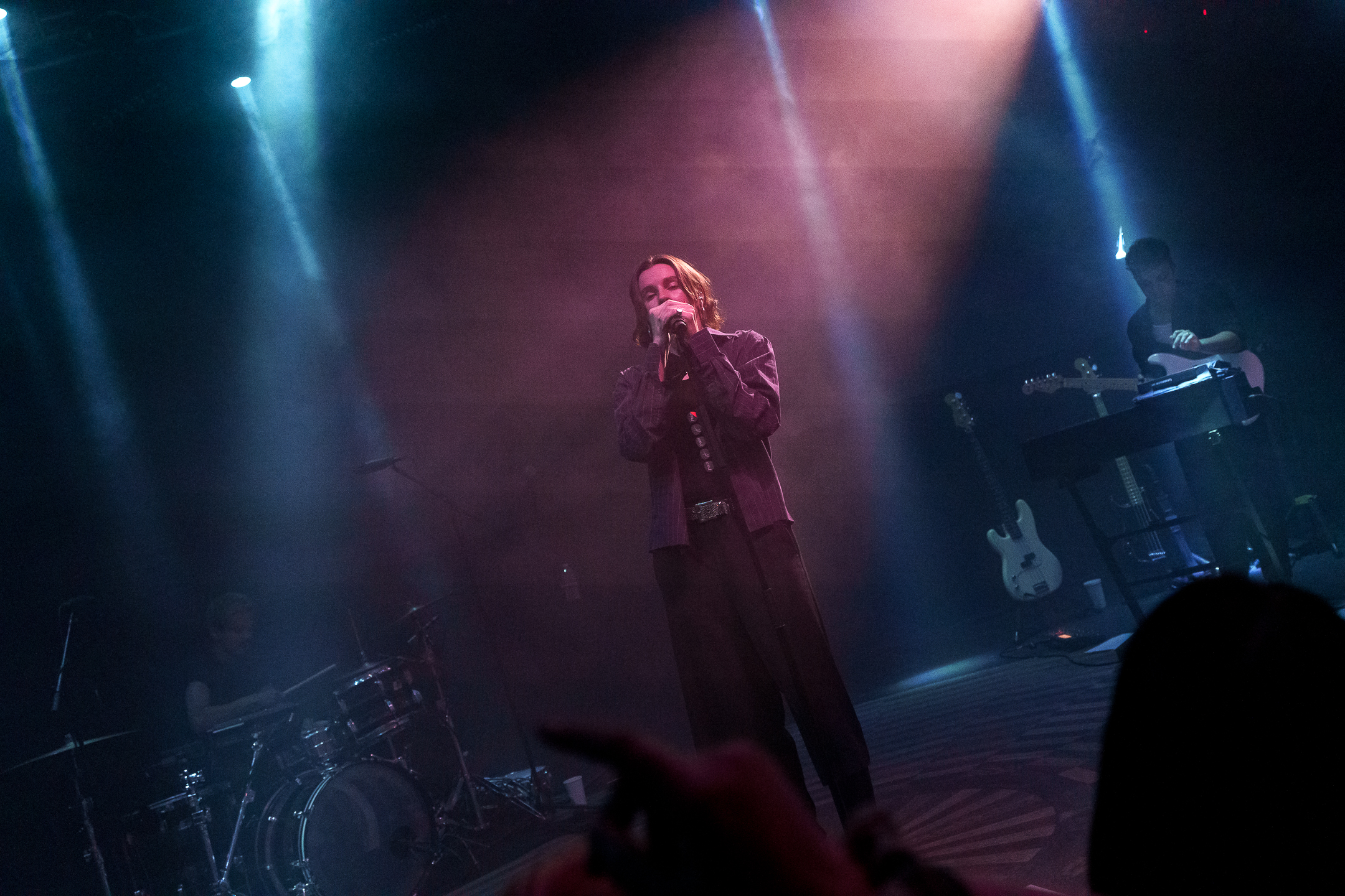 Pár minut po deváté hodině přišlo na hlavní hvězdu. Kapela PVRIS svůj set otevřela první písní z aktuálního alba EVERGREEN, a to I DON’T WANNA DO THIS ANYMORE. Až na jednu výjimku bylo během večera nové album odehráno v rámci hodiny a půl celé, skladba tak byla vybrána více než příhodně. Přibližně z poloviny zaplněný Lucerna Music Bar se zpočátku trochu ostýchal a samotné kapele také menší chvíli trvalo, než se naladila na stejnou notu. Již u třetí písně však zpívala většina klubu a dav se začal pomalu dostávat do varu.