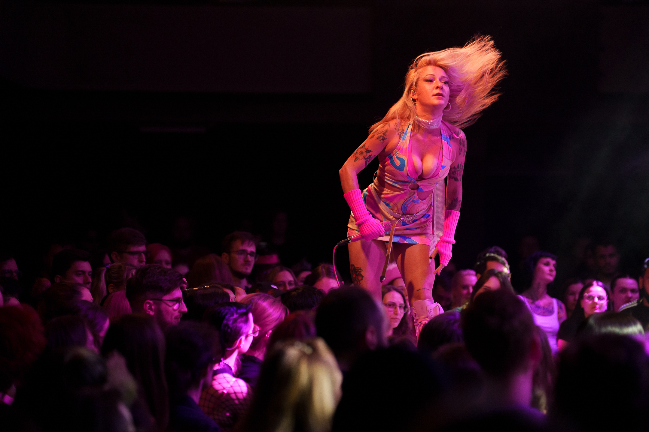 S remixem hitu Barbie Girl od Aqua hrajícím jako intro se na pódium umělkyně přiřítila a v těsném, vyzývavém oblečku otevřela svůj půlhodinový set jedním z posledních singlů Finger, věnujícím se tématu uspokojování. Netrvalo dlouho než ledy mezi ní a publikem roztály. Pár jedinců z davu znalo slova ke každé písni, někteří si dokonce i přinesli tématický růžový kovbojský klobouček, který slouží jako rekvizita k písni MILF. O dobrou náladu a humor, jež by někteří jistě nazvali trapností a cringem, nebylo nouze. Při poslechu zkrátka můžeme být na stejné vlně jako ona, nebo zcela naopak – nic mezi tím ale není možné. Došlo na metalovou venkovskou tancovačku, otevřel se twerk pit (ano, čtete správně) a nezapomnělo se ani na skupinové objetí s diváky. O Scene Queen rozhodně neslyšíme naposledy.