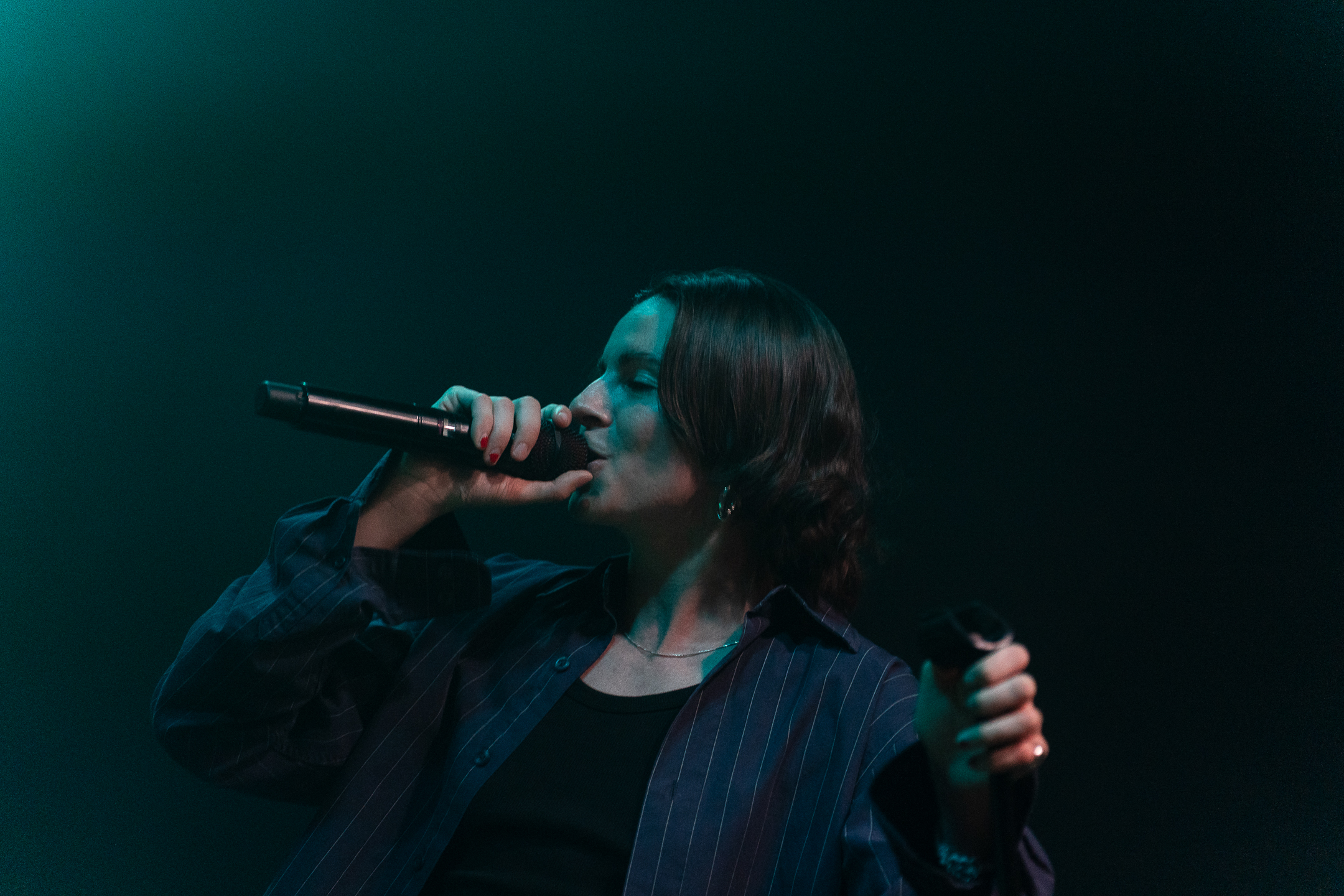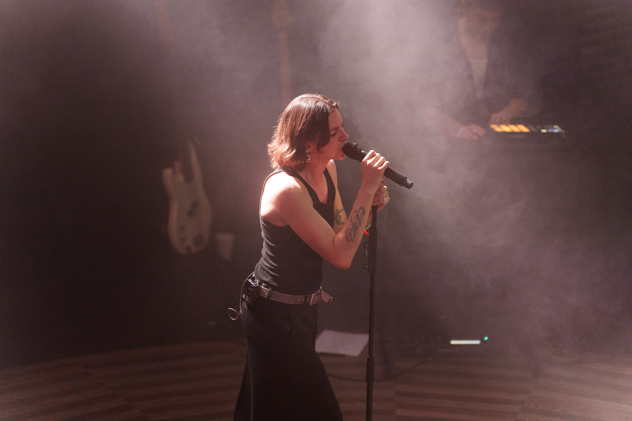 Ačkoliv image projektu tak trochu evokuje jakýsi chlad, temno a odcizení, zpěvačka na pódiu působí jako příslovečná holka od vedle, která se svými nejlepšími kamarády prostě přijela odehrát koncert, podělit se o historky z poslední návštěvy Prahy a zaválet nejen u mikrofonu, ale také na své kytaře. Právě na tu hrála ve většině svých písní.